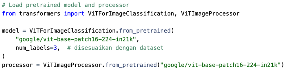 • Pretraining model yang fleksibel: Model ViT tersedia dalam berbagai skala dan telah dilatih pada dataset besar seperti ImageNet-21k.