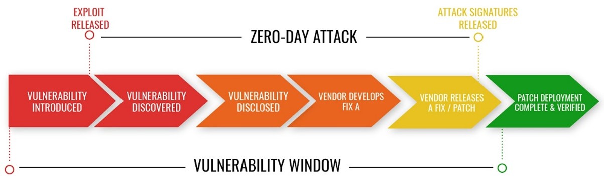 Sebuah zero-day attack tidak terjadi begitu saja, melainkan melewati tahapan tertentu sejak sebuah kerentanan pertama kali muncul hingga akhirnya diperbaiki. Menurut Fortinet (2023), peneliti keamanan Leyla Bilge dan Tudor Dumitraș membagi siklus eksploitasi zero-day ke dalam tujuh tahap. Berikut Adalah penjelasannya: