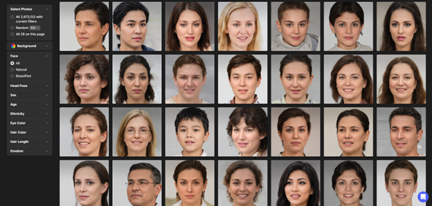 Figure 2. Synthetic faces generated by AI tanpa data manusia asli (https://generated.photos/faces)