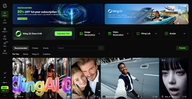 Interface Kling AI (taken from: https://app.klingai.com/global/)
