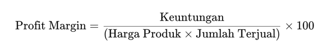 Gambar 1 memberikan informasi nilai profit margin untuk setiap produk, dengan persentasi profit margin tertinggi diperoleh oleh produk E. Jika kita lihat pada data, secara keuntungan produk E bukanlah produk dengan keuntungan tertinggi, namun jika keuntungan dibandingkan dengan hasil kali harga jual dan jumlah terjual, terlihat bahwa menjual barang E menghasilkan profit lebih besar besar dibanding produk B sebagai pemegang nilai keuntungan tertinggi. Menjual barang dengan harga murah dalam jumlah besar bisa jadil lebih menguntungkan dibandingkan dengan menjual barang dengan harga lebih tinggi jika biaya yang diperlukan juga sesuai.