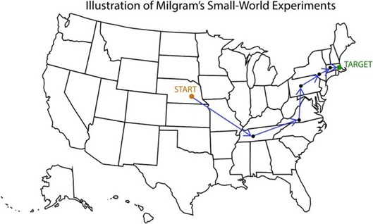 Pada tahun 1960-an, seorang psikolog bernama Stanley Milgram melakukan sebuah eksperimen bernama Small-world Experiment yang bertujuan untuk melihat seberapa dekat manusia saling terhubung satu sama lain. Milgram meminta peserta eksperimen di Nebraska untuk mengirim surat ke seorang makelar saham di Boston, dengan syarat bahwa surat tersebut hanya boleh dikirimkan melalui kenalan yang mereka tahu. Logikanya, dengan perbedaan lokasi dan kelas sosial, surat ini butuh ratusan perantara. Namun, hasilnya mengejutkan: surat tersebut berhasil sampai rata-rata hanya butuh lima atau enam tangan. Inilah asal muasal istilah six degrees of separation.