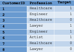 Table 1. Sampel data fitur profesi dengan nilai kategorikal beserta nilai target