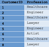 Table 2. Sampel data fitur profesi dengan nilai kategorikal