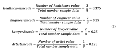 Table 2. Sampel data fitur profesi dengan nilai kategorikal