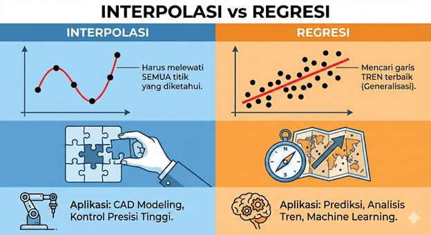 Sebelum menyelami lebih dalam, mari kita pahami perbedaan mendasar antara interpolasi dan regresi – dua teknik yang bahkan sering membingungkan bahkan mahasiswa tingkat akhir
