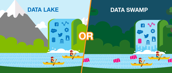 Saat data dimasukan tanpa kontrol, ini menjadi masalah. Data menjadi sangat besar dan sulit bernavigasi dalam data lake. Diiringi dengan tidak adanya kepemilikan yang jelas, kurangnya kepatuhan terhadap aturan dan dokumentasi, menjadikan permasalahan ini sebagai kegagalan implementasi ELT berakar dari tata kelola yang buruk (bad data governance). [7]