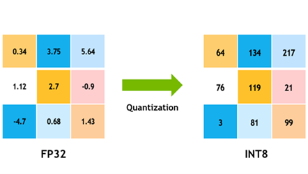 Figure 1. Precision comparison chart for FP32 to INT8 (source: NVIDIA Developer Blog).