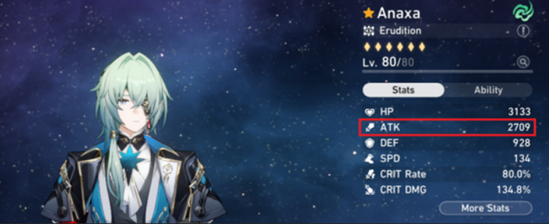 Sebagai contoh dari game Honkai: Star Rail, karakter memiliki God stat yang berbeda-beda. Blade memiliki lebih banyak HP (Hit Points) daripada karakter lain karena stat tersebut yang digunakan saat menyerang musuh. Sebaliknya, Anaxa memiliki ATK (Attack) yang lebih besar daripada Blade karena ia menggunakan Skill yang berskala berdasarkan ATK. Karena hanya memberi efek kecil, HP untuk Anaxa dan ATK untuk Blade menjadi Dump stat untuk mereka. Dengan pengetahuan ini pemain dapat mengalokasikan equipment berdasarkan stat yang sesuai dengan masing-masing karakter. Dalam game ini mendapatkan God stat menjadi salah satu prioritas dalam endgame, untuk mengoptimalisasikan setiap karakter dan mengalahkan tantangan yang paling kuat.