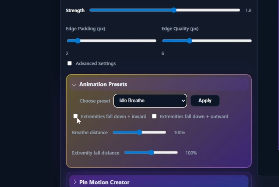 Ini dia selling point terbesarnya! Cukup masuk ke menu Animation Presets dan pilih opsi “Idle Breathe”. Karakter 2D kamu akan langsung memiliki animasi bernapas seperti karakter RPG secara otomatis.