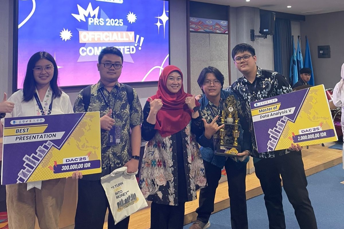 Surabaya, 3–5 Oktober 2025 — Mahasiswa dari School of Computer Science BINUS University kembali menunjukkan kemampuannya dalam bidang analisis data dengan meraih prestasi pada ajang Data Analysis Competition 2025 yang diselenggarakan oleh Himpunan Mahasiswa Statistika, Institut Teknologi Sepuluh Nopember (ITS), dalam rangkaian Pekan Raya Statistika 2025. Kompetisi ini mengangkat tema “Decoding Consumer Behavior: Statistical Approaches for Digital Marketing Insights.”